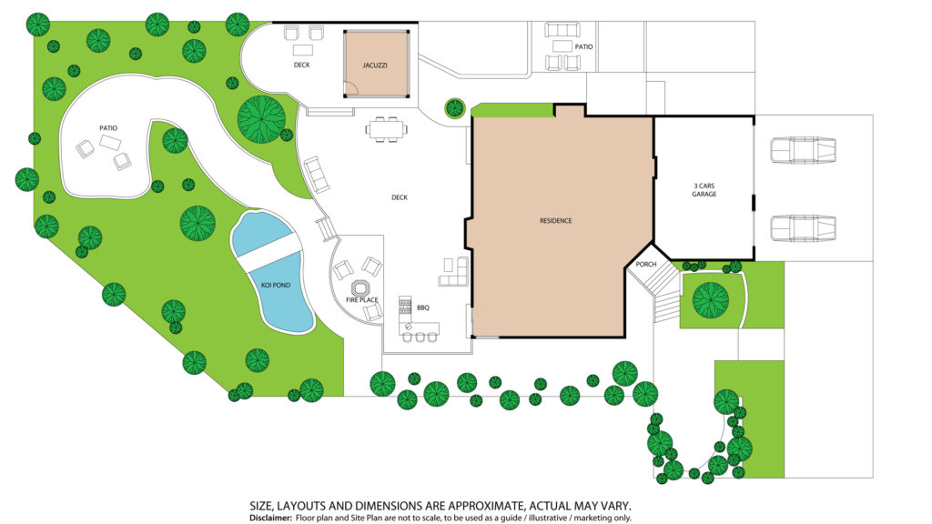 The expansive 2300 square foot Trex deck is easily accessed from the kitchen area. The deck is built for entertaining! It has a Bull outdoor kitchen with barbeque grill, 1 burner stove top and seating for up to 4. The built in outdoor firepit has room to sit many and is ready for an evening of smores with the next homeowners. The outdoor spa is covered by a gazebo and has a deck adjacent, perfect for sunbathing. Past the deck you will find a large koi pond with bridge and waterfall. There is an area past the koi pond perfect for admiring the nature surrounding the entire backyard. This deck has allowed for parties of 75 people and a wedding.